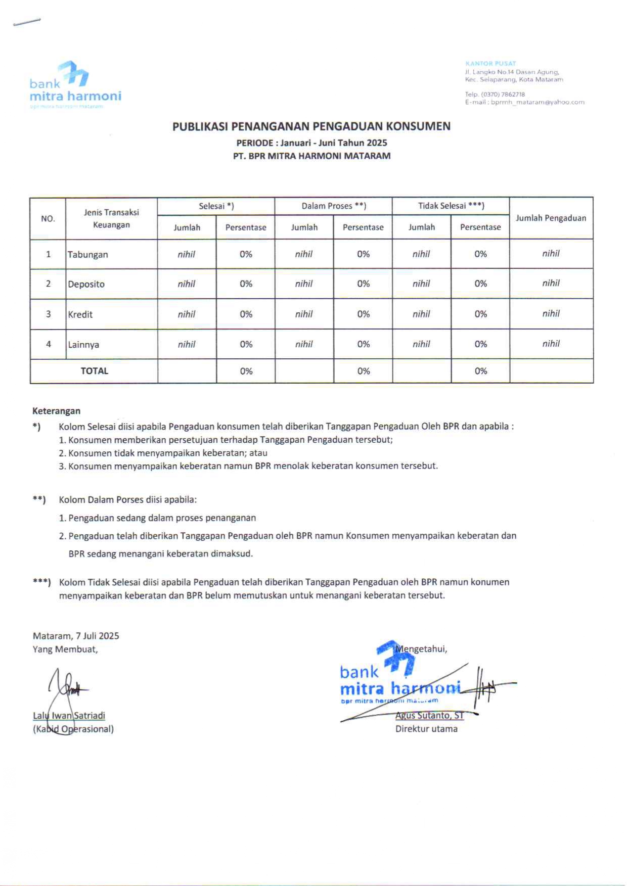 PUBLICATION REPORT ON CONSUMER COMPLAINTS SEMSTER 1 2025